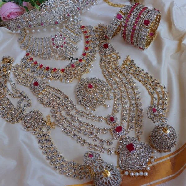american diamond necklace, ad necklace, Indiajewellery, ad jewelry, ad bridal set