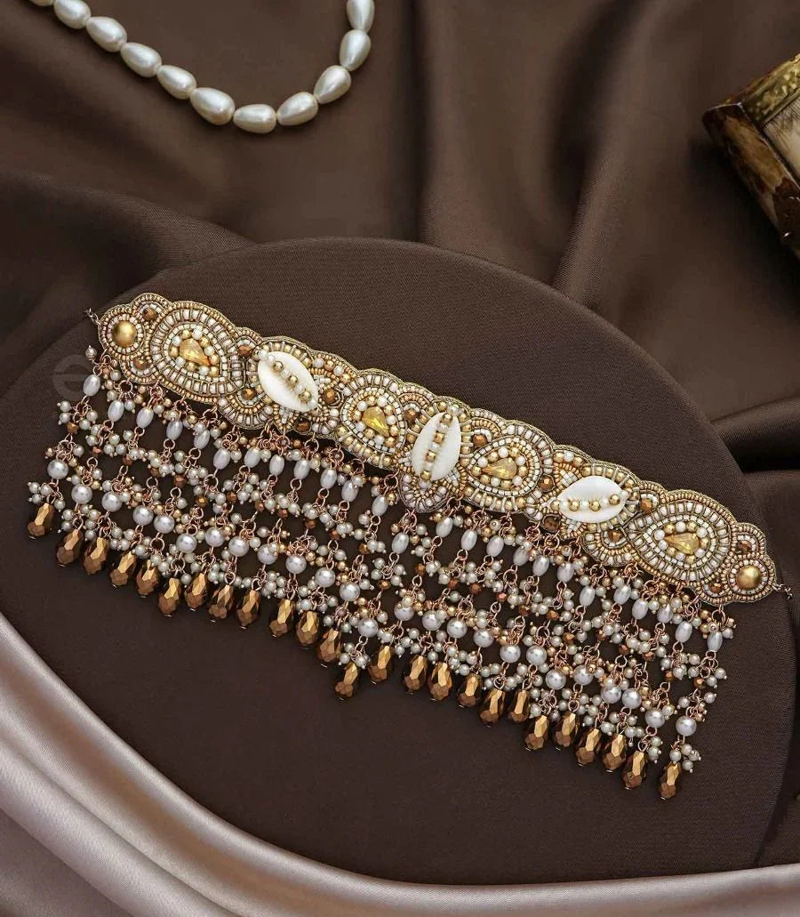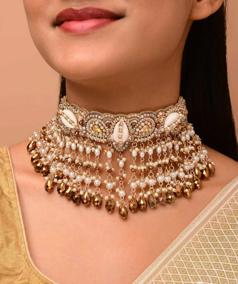 Prishit - Remnants Of The Raindrops- Stones, Beads, Glass Drops And Shells Hand Embroidered Choker Neckpiece
